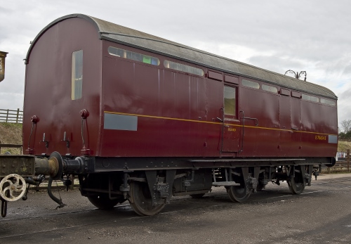 Six-wheel Thompson non-gangwayed passenger brake. P 1978 by RVP member. Restored to non-original BR maroon 1979. Ran 1981-90, then fell into disuse. Sold to RVP and extensively rebuilt (including full outer reskin)- winning Transport Trust award in 2003. |