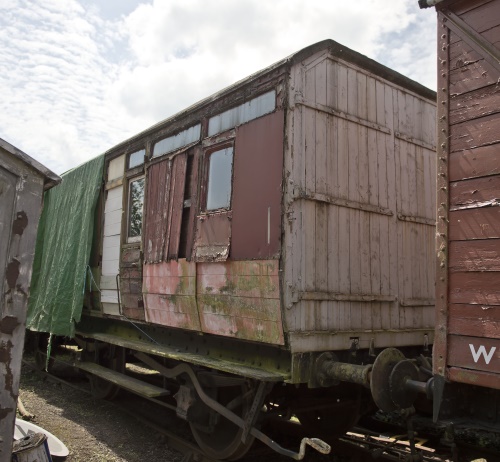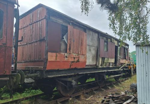 11429 is possible; 11433 more likely. Latterly Pooley van. P 1980 from Edge Hill, Liverpool; Steamport till 1986. Underframe (Clemison Patent) 1890, body 1912?? Motor car van used shooting season for transport to Scotland. By 10/18: moved from Llangollen to Telford. 02/24: confirmed in situ at Telford. |