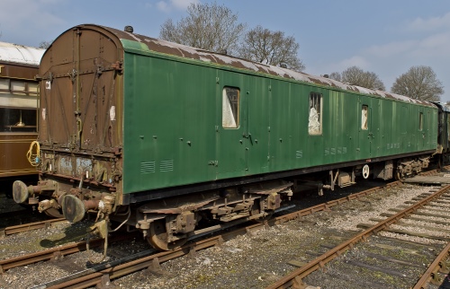 Post Office livery (NJV) when withdrawn. From VSOE Stewarts Lane to Bluebell 01/09 for use as storage space. 09/24: offered for sale. Left the Bluebell Railway 03/25 for a private preservation site in Sussex, where it is now stored undercover. |