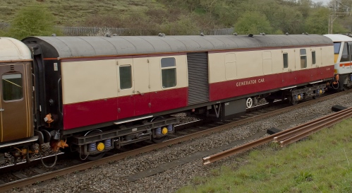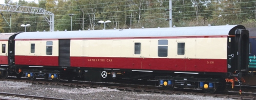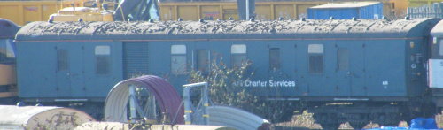 Converted from NDA to AX51 generator van in 1992 for sleeper services; later used in steam-hauled railtour formations, based at Old Oak Common; owned by EWS. All-over BR Blue livery. By 01/10: moved from Old Oak Common to Training Compound at Toton Depot. By 08/16: at Crewe LNWR Heritage Company in ownership of Locomotive Services Ltd. By 08/18: livery now changed from BR rail blue to BR crimson lake and cream, lettered GENERATOR CAR. |