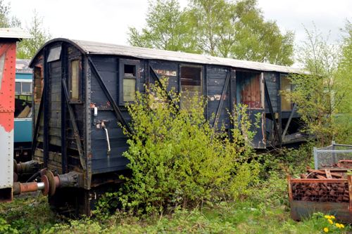 Converted to Pooley Van, then Mess Van. Ex Caerphilly. Left Pontypool & Blaenavon Railway c2019 to unknown location. |
