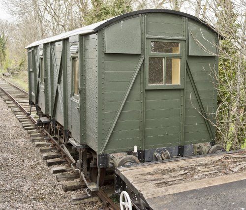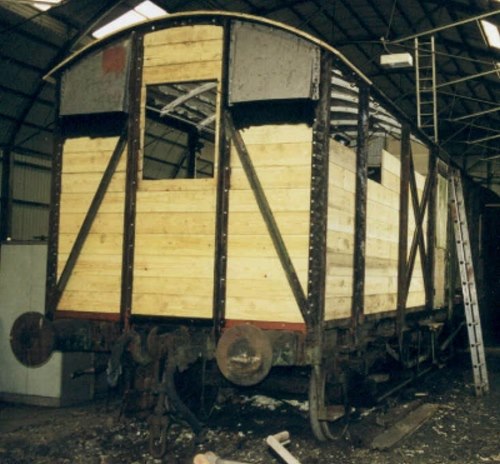 Converted under Lot 1111 to Mess & Sleeping Van 1961. P 1986. By 06/13: heavy repairs completed. By 07/25: moved from West Somerset Railway to Railway Support Services, Rye Farm, Wishaw. |