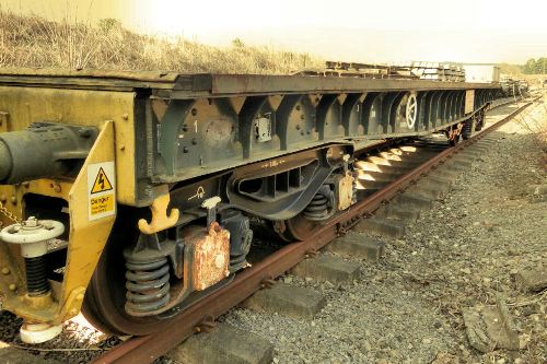 Development of First World War WD 'Parrot' flat wagon. Originally intended for French military authorities, but the fall of France changed that. Modified for BAOR by Waggonfabrik Talbot of Aachen, to their G.A. diagram AZ 20080. Re-patriated in 2002 & 're-gauged' by E.G. Steele of Hamilton - TOPS diagram KF020A. For sale on March 2011 tender list. Arrived from MoD Bicester 04/2011 |