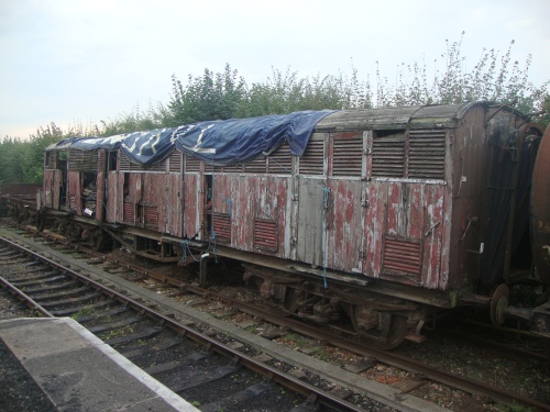Siphon G, later Materials Van. P 1987 by Active Force (Swindon Railway Engineering Ltd). Resold 1990. 2000: some of roof covering coming adrift; some panels split/rotten. 07/04: still in need of attention or covering to prevent further deterioration. By 09/18: body scrapped - see main photo. By 12/22: underframe moved from Cholsey and Wallingford Railway to South Devon Railway. By 08/24: underframe scrapped. |