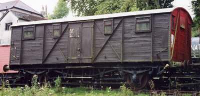 'Bloater A' P 1993? ex Swansea Docks tool and mess van. At Vale of Neath's Tonna operating base till 1994. Then to Gwili. Then to Llanelli and Mynydd Mawr Railway at Cynheidre (6 miles N of Llanelli). Is certainly the original underframe. In GWR Brown, with '71' on side (as if GWR Tool Van). |