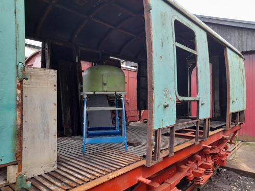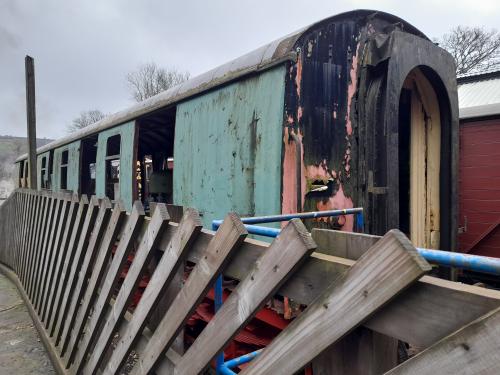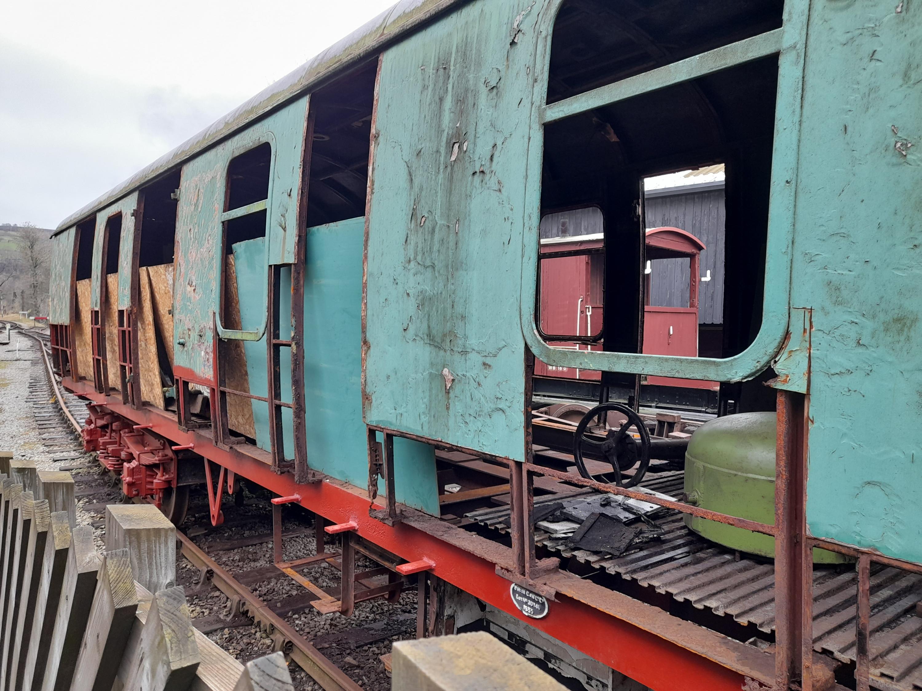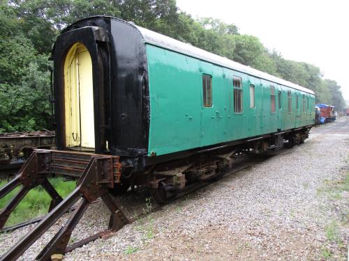 P 1987. In use as mobile Permanent Way Department Equipment Coach, stabled at New Bridge Engineering sidings. Noted 11/11 as being prepared for scrapping in the near future. Still there 04/17: advertised as for disposal or failing that for scrapping. By 07/18: to Keighley and Worth Valley Railway (KWVR) - at Ingrow siding awaiting overhaul and adaptation as civil riding Van: condition is structurally sound but requiring some work (doors rough, some internal brake and other fittings missing). 01/26: sold by KWVR for static use: parts being removed prior to transportation away (see additional photos). |