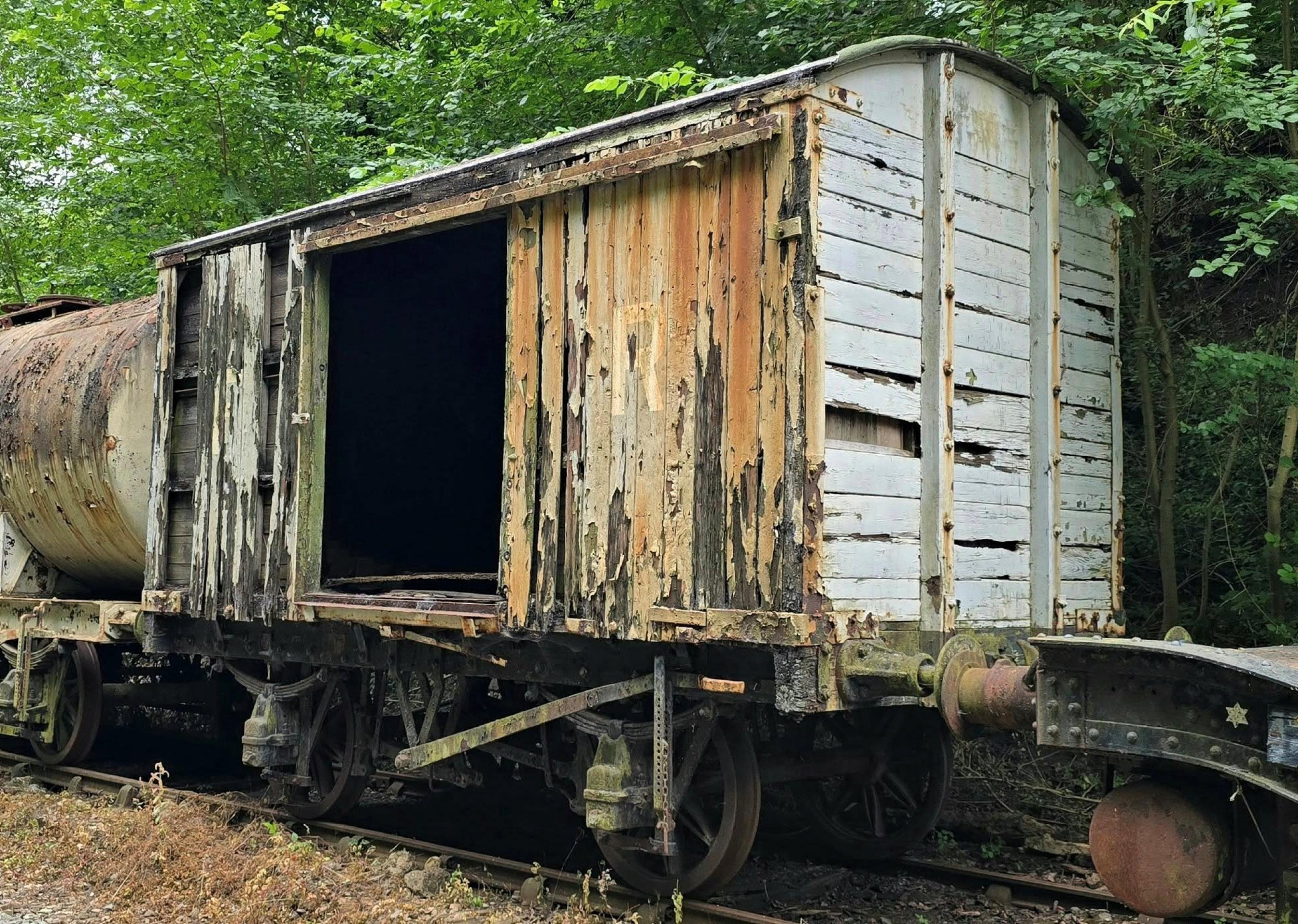 Ffestiniog Railway Ex ROF Glascoed, off track at Minffordd P/Way Depot. Moved to Battlefield line by 07/25. |