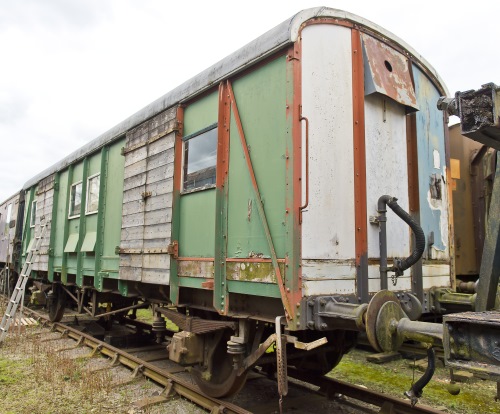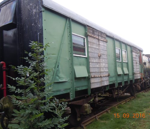 P 1982? Battlefield Line, but to Ruddington by 6/01, then to Tyseley by 7/05. Plywood body. Used as store van. To Gloucs Warks by 2/09, where being repaired and for repaint into green livery. |