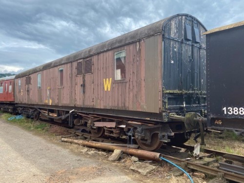 'Monster' scenery van (now exhibition van). W 1978. P 06/1979, Bluebell. Bogie, end doors. For sale since 09/03. To Swindon & Cricklade, by 02/06 and to Heritage Engineering Ltd at Swindon by 01/07, then to Gloucs Warks by 04/08. Restoration completed July 2013 (see additional photo below). 09/16: at Winchcombe. |