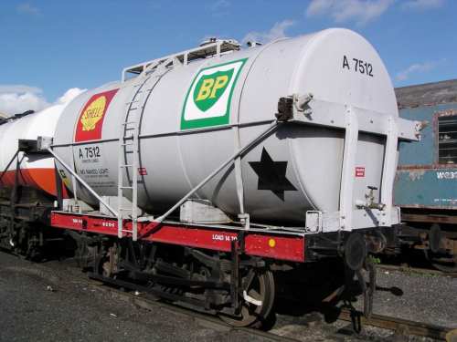 SMBP design. Acquired by SMBP from Air Ministry in 1947. Ex Class A Aviation Spirit Tank - heating coils & bottom outlets fitted, centre side ladder. |