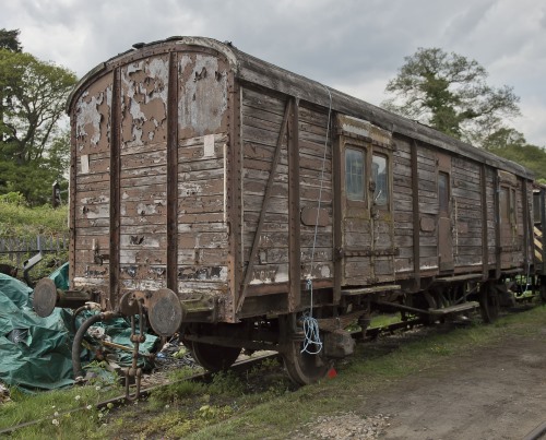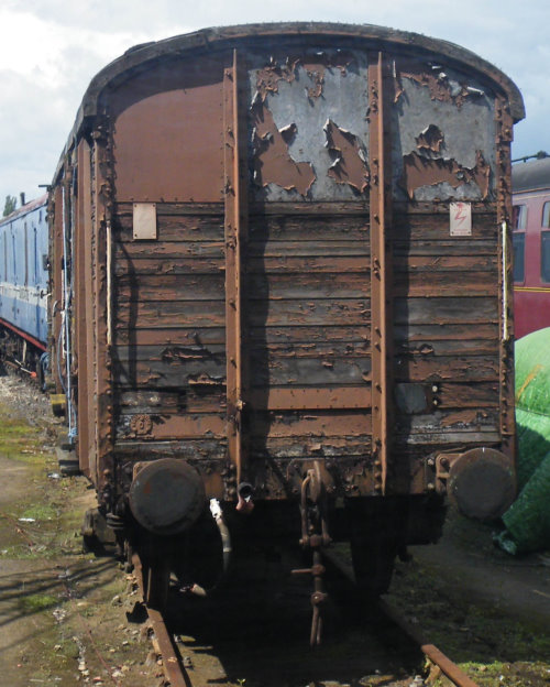 P 1994. Carries text on side: 'QSW MEs rse Match Van'. Was acquired by National Railway Museum but by 04/16 moved to Rye Farm, Wishaw, Sutton Coldfield. By 05/18: moved to Llangollen Railway. By 10/18: Brake gear removed and exterior restored towards conversion as a 'camping van' to be based at North Yorkshire Moors Railway. 11/20: moved to Platform Three Camp Site, Undercliffe, Pickering (beside North Yorks Moors Railway) - adapted for use as 'glamping' accommodation by 12/25. |